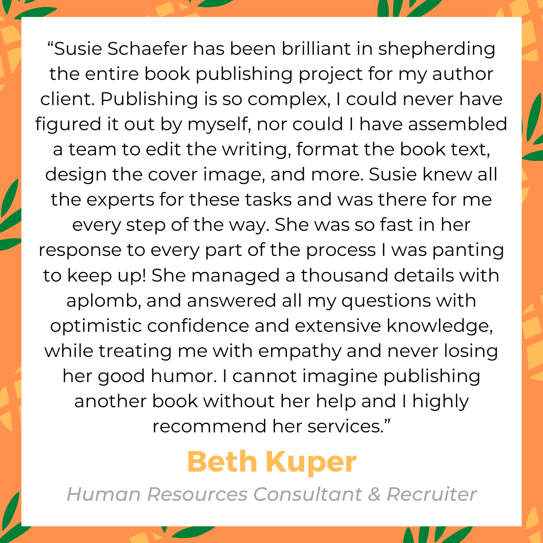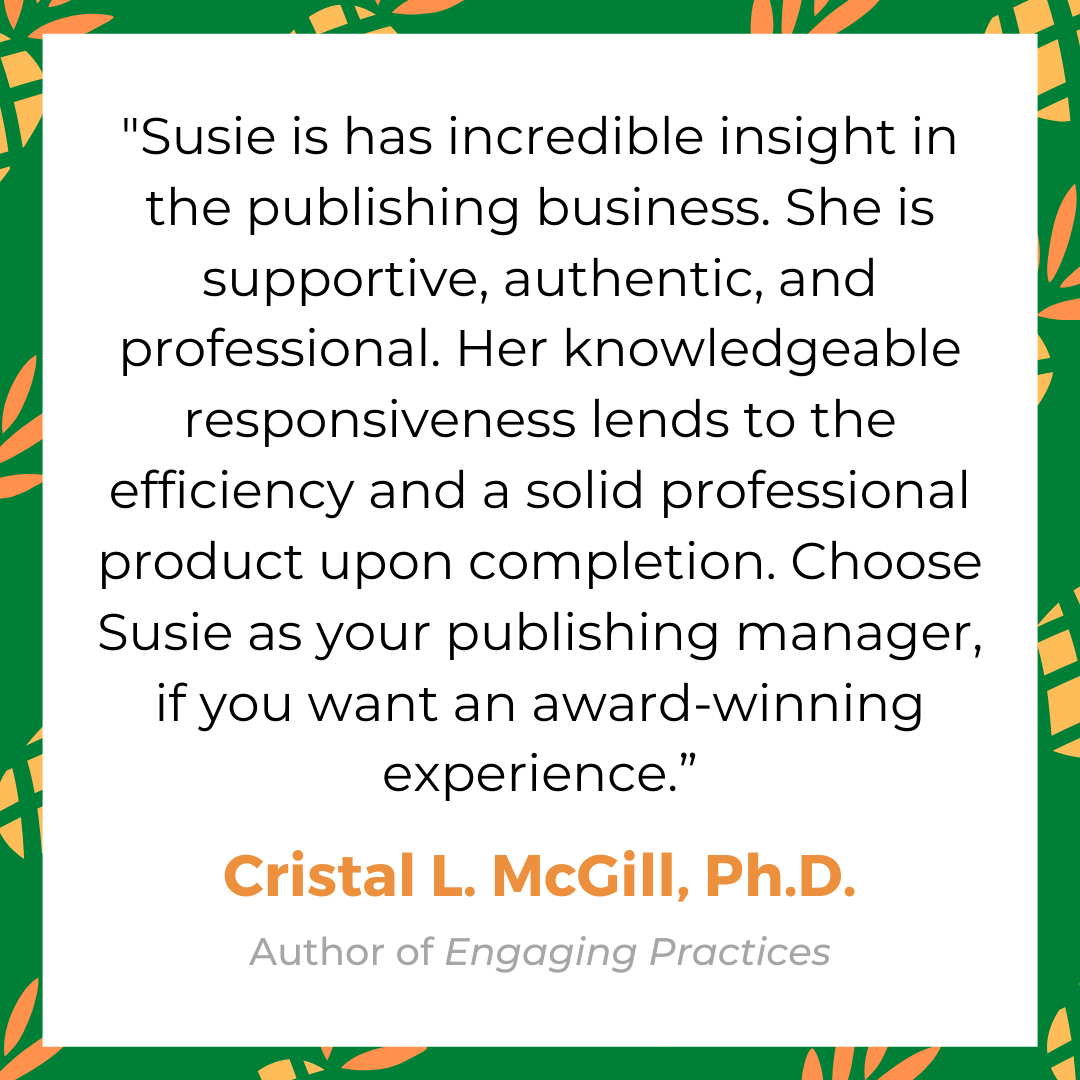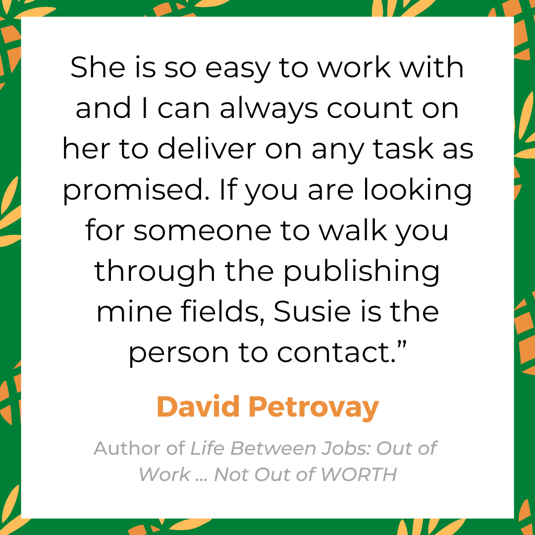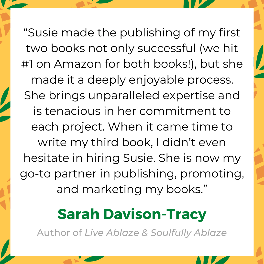 Susie comes to the table with an array of superpowers; her unique combination of business acumen, street smarts, and mystic intuitive gifts to help people see what’s truly possible with no limitations. Her corporate experience working with non-profits, teaching and training in human resources and as a marketing expert, and a stint in radio broadcasting and commercial acting allows Susie to skillfully guide authors through the independent publishing process to finish that dream book, launch a speaking career, or build a business by publishing a book that gets results and gives back.